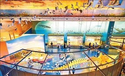 10月2日,游客來(lái)到位于江蘇鹽城的黃海濕地博物館參觀游覽。胡志超攝(影像中國(guó))