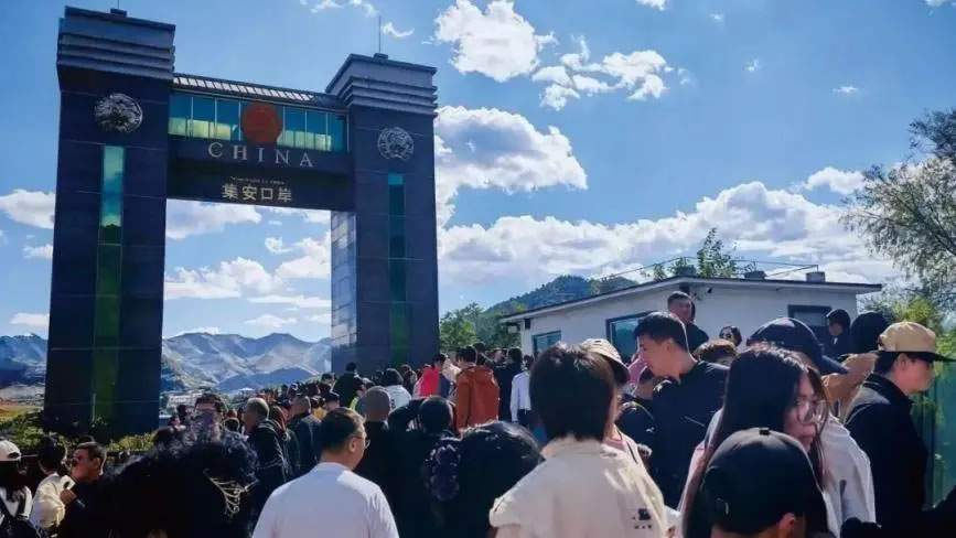 鴨綠江國(guó)門景區(qū)人頭攢動(dòng)(央廣網(wǎng)發(fā) 吉林省文化和旅游廳供圖)