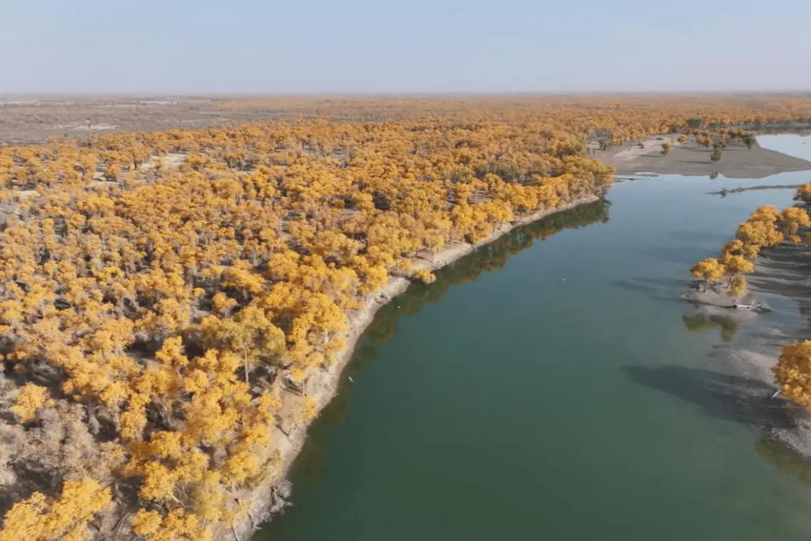 胡楊是荒漠生態(tài)系統(tǒng)的重要維系者。它耐寒、耐旱、耐鹽堿、抗風沙,被譽為“沙漠守護神”,對于穩(wěn)定荒漠河流地帶的生態(tài)平衡、防風固沙、調節(jié)氣候、保護生物多樣性具有不可替代的作用。近年來,庫車市持續(xù)加大胡楊林保護力度,通過引洪灌溉、圍欄封育、直升機飛防等多種措施,讓胡楊林盡顯生機。同時,塔里木鎮(zhèn)還通過發(fā)展胡楊觀光旅游,帶動農(nóng)產(chǎn)品銷售和農(nóng)戶增收。