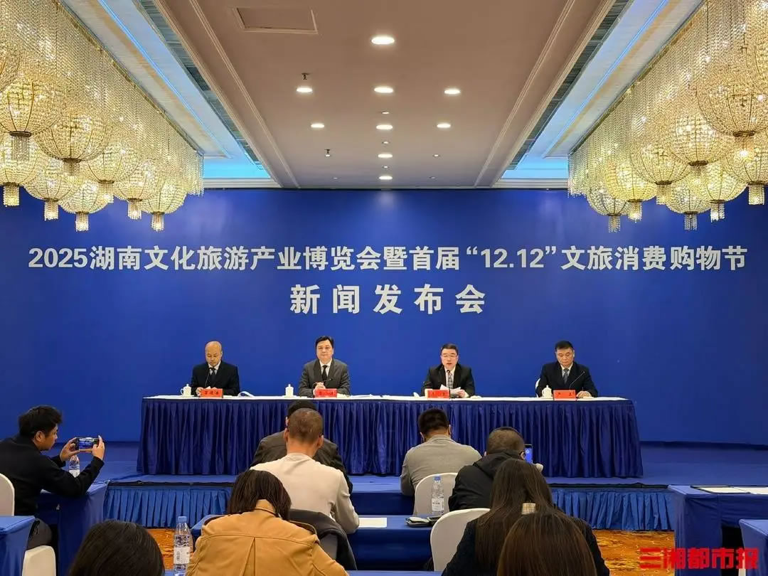 2025湖南文化旅游產(chǎn)業(yè)博覽會(huì)暨首屆“12·12”文旅消費(fèi)購物節(jié)新聞發(fā)布會(huì)現(xiàn)場。曾冠霖 攝