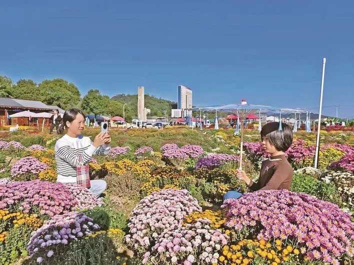 初冬暖陽下,沙縣區(qū)中國菊花種質(zhì)資源保存中心南方分中心基地內(nèi)繁花似錦。30多個菊花品種次第綻放,切花菊、地被菊、食用菊等繽紛鋪展,10余畝菊田進(jìn)入最佳觀賞期,吸引眾多市民前來賞菊。