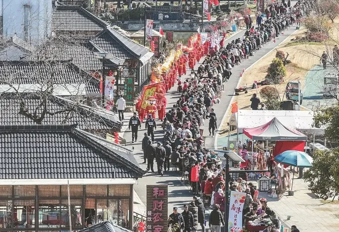 2026年1月11日,一場承載著濃濃年味與鄉(xiāng)土習(xí)俗的宴會,在南京市高淳區(qū)椏溪國際慢城溫暖開席。超1.6公里長的一字長街上,共450余桌宴席迎接了約5000名游客齊聚,同享美食,共迎新歲。