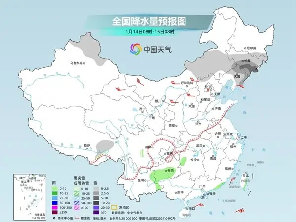 后天,內蒙古中部、吉林東部、新疆沿天山地區(qū)和伊犁河谷、西藏東北部、川西高原東部等地部分地區(qū)有小到中雪或雨夾雪,其中,新疆沿天山西部等地部分地區(qū)有大雪。西藏東南部、湖北西南部、湖南西北部、重慶東南部、貴州東北部、云南中南部、廣西西部等地部分地區(qū)有小雨。