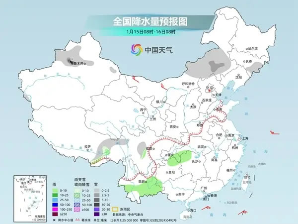 未來三天,全國大部仍將維持晴朗干燥的天氣格局,雨雪天氣零散分布在東北地區(qū)、西南地區(qū)東部等地。中央氣象臺預計,今天,新疆北部和東部、甘肅河西、黑龍江中東部、吉林東部等地部分地區(qū)有小雪或雨夾雪,其中,新疆北部和東部等地局地有中到大雪。四川盆地南部、云南東北部和南部、臺灣島東部等地部分地區(qū)有小雨。