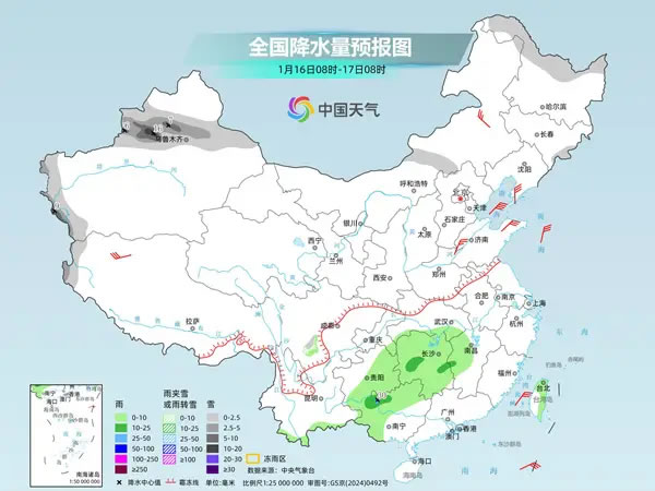 中央氣象臺預(yù)計,今天,新疆沿天山地區(qū)及南疆西部山區(qū),黑龍江北部、吉林東部、西藏西部等地部分地區(qū)有小到中雪,其中,新疆沿天山西部地區(qū)和伊犁河谷等地部分地區(qū)有大到暴雪;江南中西部、貴州東部和南部、廣西西部和北部、云南南部、臺灣島東部等地部分地區(qū)有小到中雨,廣西西北部局地有大雨。
