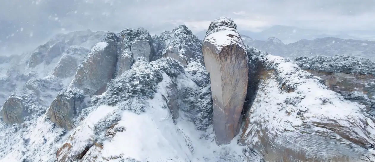 “辣椒峰”以赤紅色丹霞巨石形似倒立辣椒得名,2002年因法國“蜘蛛人”徒手攀爬而名揚(yáng)世界,其雄奇險(xiǎn)峻的地貌與晶瑩冰雪形成強(qiáng)烈視覺碰撞,成為冬日崀山的全新打卡地標(biāo)。此次全新亮相的冰雪樂園,打破傳統(tǒng)賞雪模式,將5000平方米空間打造成集觀賞、互動(dòng)、探險(xiǎn)于一體的歡樂場:霧凇步道上,冰晶綴滿枝頭,與丹霞巖壁相映成趣,步步皆是童話景致;冰雪小屋內(nèi),熱飲氤氳伴雪落之聲,氛圍感拉滿;親子嬉雪區(qū)里,堆雪人、打雪仗的歡聲笑語,重拾純粹童真。對(duì)于追求刺激的游客,雪圈滑道俯沖而下的風(fēng)馳電掣、雪地摩托專屬賽道的馳騁飛躍,搭配雪橇、地形車、雪地碰碰球等十余種項(xiàng)目,全方位刷新“玩雪”想象。