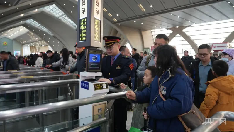火車站工作人員正在引導乘客通過閘機(央廣網(wǎng)發(fā) 銀川火車站供圖)