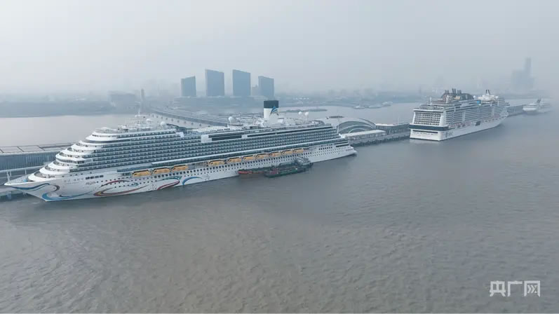 1月27日,吳淞口國際郵輪港迎來今年首次兩船同靠(央廣網(wǎng)發(fā) 陳鴻思 攝)