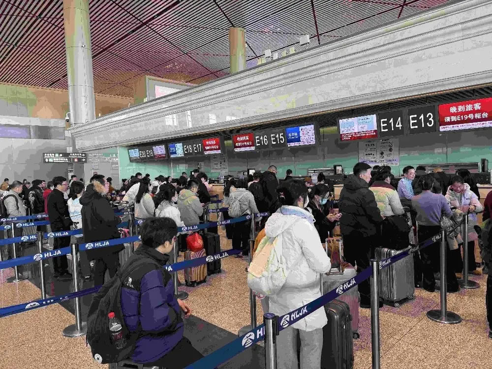 春節(jié)假期以來,哈爾濱機(jī)場客流持續(xù)高位運(yùn)行,呈現(xiàn)出“客流量大、寬體機(jī)多、聯(lián)動性強(qiáng)”的運(yùn)行態(tài)勢。根據(jù)預(yù)測,2月20日起,哈爾濱機(jī)場進(jìn)入返程高峰期,其中2月23日(正月初七)為整個(gè)春運(yùn)期間客流峰值日,預(yù)計(jì)當(dāng)天運(yùn)送旅客超10萬人次,返程高峰期呈現(xiàn)游客集中返程,峰值高、周期短的特點(diǎn)。據(jù)統(tǒng)計(jì),從哈爾濱飛往北京、上海、廣州、深圳、重慶等城市的部分航班客座率接近100%,從北京、上海、廣州、深圳、?凇⑷齺喌瘸鞘酗w往哈爾濱的航班客座率達(dá)到90%。