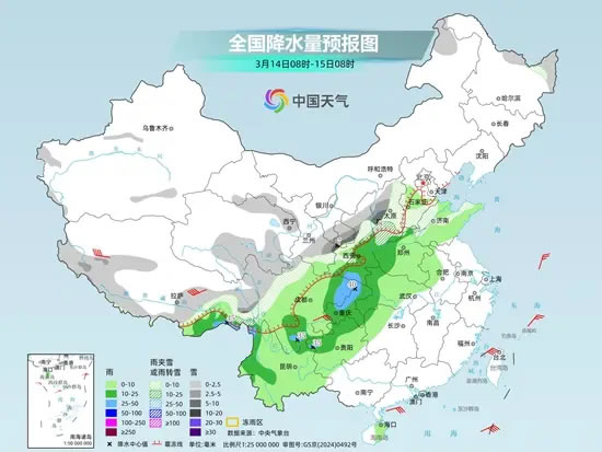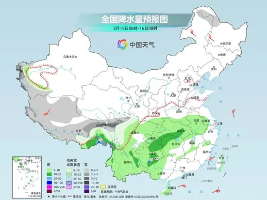后天,北方大部雨雪停歇,南方則維持多雨?duì)顟B(tài)。預(yù)計(jì),新疆南疆西部山區(qū)、西藏大部、川西高原等地部分地區(qū)有小到中雪或雨夾雪,其中,新疆南疆西部山區(qū)、西藏東北部、川西高原北部等地局地有大雪;西藏東部、云南西北部和東部、重慶東部、貴州南部、湖北南部、湖南北部、廣西西北部等地部分地區(qū)有中到大雨。