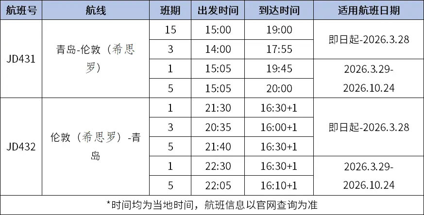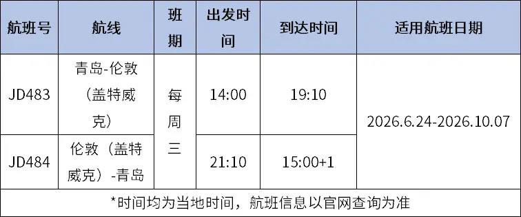 青島往返倫敦(希思羅)航線航班時刻如下(均為當(dāng)?shù)貢r間,航班信息以官網(wǎng)查詢?yōu)闇?zhǔn)):