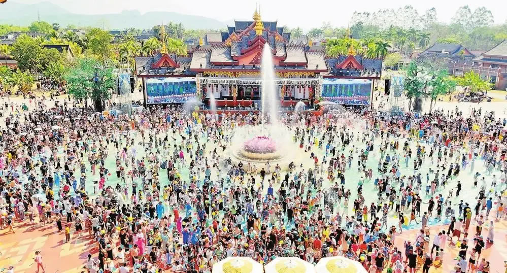 在位于景洪市勐罕鎮(zhèn)的AAAA級旅游景區(qū)傣族園,潑水廣場上萬人同潑吉祥水,飛濺的水花與游客的笑聲交織成歡樂的海洋。“我們每天下午舉辦3場潑水狂歡活動,能同時容納上萬人的廣場幾乎場場爆滿。”傣族園景區(qū)副總經(jīng)理歐成林介紹,景區(qū)持續(xù)人氣爆棚,春節(jié)假期接待游客21.87萬人次,單日入園人數(shù)最高達(dá)34870人。