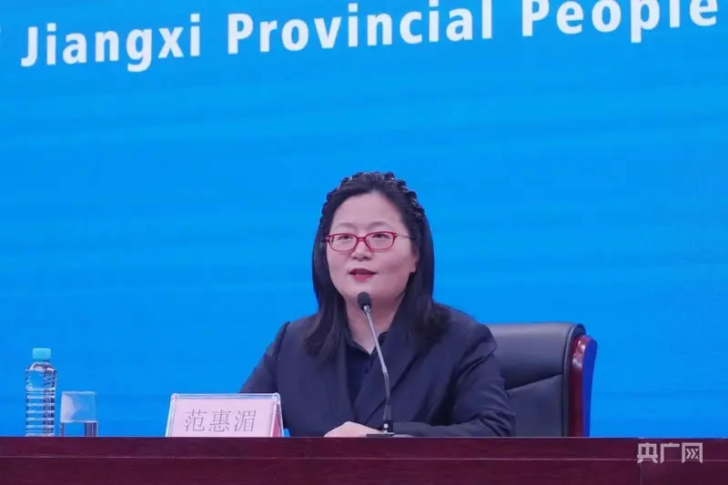 范惠湄介紹江西商旅文體健融合的相關情況(央廣網(wǎng)見習記者 葉昱汝 攝)