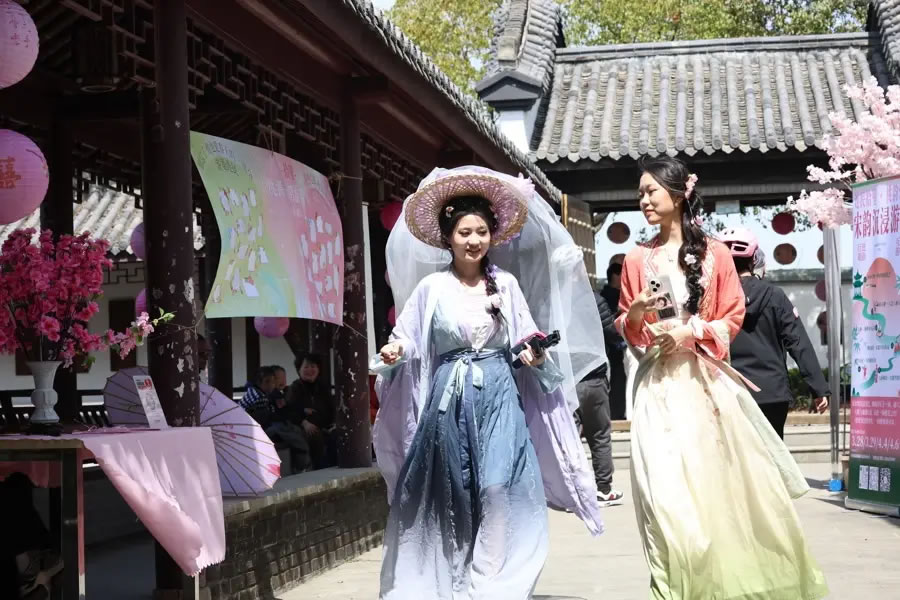 可見,花不再是花節(jié)里的主角,游客自己才是。記者發(fā)現(xiàn),不管是櫻花節(jié),還是桃花節(jié),前來參加的年輕人不少都穿了漢服、精心裝扮,充分投身于環(huán)境,成了一幕幕“沉浸式”演出里重要的一環(huán)。