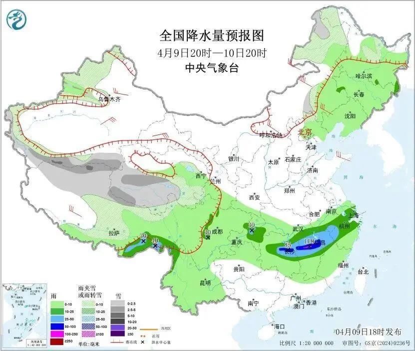 后天,內(nèi)蒙古東北部、黑龍江北部、新疆西部和南部、青海東部、甘肅西部、西藏北部、四川北部等地部分地區(qū)有小雪到中雪或雨夾雪,局地有大雪。西藏東南部、四川中部、重慶南部、貴州北部、湖南中南部、江西中南部、福建北部、浙江南部等地部分地區(qū)有中到大雨,局地有暴雨。