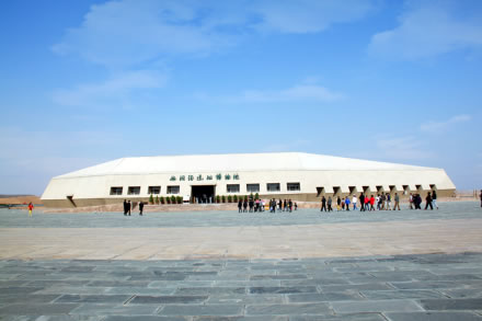水洞溝遺址博物院,它的外形仿水洞溝出土的名為石核的石器建造而成,建筑面積4308平方米,水洞溝遺址博物院以雕塑、展板、投影、文物展出以及講解的形式,可以了解人類(lèi)進(jìn)化的起源、水洞溝文化的興起以及水洞溝遺址五次考古發(fā)掘的過(guò)程與成果,同時(shí),還有12分鐘的動(dòng)態(tài)演出,讓我們實(shí)景體驗(yàn)三萬(wàn)年前原始人生產(chǎn)、生活以及面臨山洪暴發(fā)、山崩地裂的災(zāi)難時(shí)被迫遷徙的場(chǎng)景。