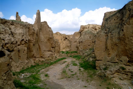 從水洞溝到紅山堡之間,有長(zhǎng)約4公里的峽谷,本是大自然的“杰作”,但明代時(shí),這又成了長(zhǎng)城“深溝高壘”防御體系的重要組成部分。峽谷兩岸經(jīng)常年的風(fēng)雨剝蝕,溝壑縱橫,深厚的黃土經(jīng)長(zhǎng)期的雨水沖刷,土柱突兀壁立,造型奇特,形成了“土林”。“土林”又經(jīng)大自然鬼斧神工雕琢般地形成千奇百怪的形像。有的像僧人登高遠(yuǎn)眺,似在期待來(lái)者;有的宛如一對(duì)戀人,相親相依;有的如夫妻相敬,雙方對(duì)拜,琳琳總總,各具形態(tài),給人以無(wú)盡的遐想。在峽谷的兩邊的崖壁上有明代將士修建的藏兵洞,它充分顯示了古代人民的軍事智慧和聰明才智。