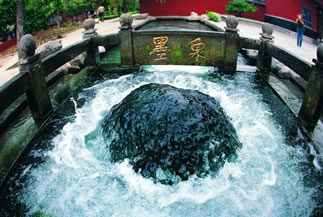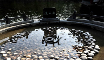 位于百脈泉公園清照園內(nèi),泉池圓形,直徑3米,深0.5米,形若圓盤,泉中池底鋪鵝卵石,泉噴水花色白如玉,噴高可達數(shù)尺,水落池中如玉石片片,碧水洗白玉,浩純無暇故名白玉泉(漱玉泉),更與墨泉遙相呼應(yīng),一黑一白,一暗一明,共匯繡江。給李清照故里增添了一幅秀麗的畫卷。仰首西望,易安樓琴聲陣陣,海棠軒茗香輕飄,黃花館書畫琳瑯,金石苑古色古香。泉水風(fēng)貌,文化品味融為一體,給清照園增添了耀眼的光彩。