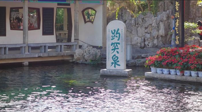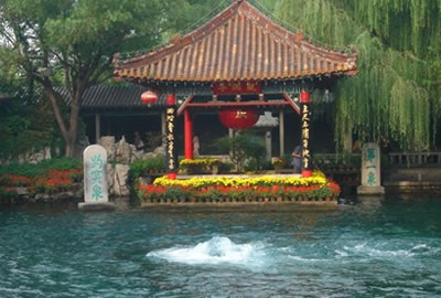 趵突泉又叫檻泉,是濼水的源頭,如今已有二千七百年的歷史!磅劳蝗卟l(fā),聲如隱雷”,“泉源上奮,水涌若輪”。泉水一年四季恒定在攝氏18度左右,嚴冬,水面上水氣裊裊,薄霧冥冥,一邊泉池波光粼粼,一邊是亭臺樓閣,金壁煌煌,構(gòu)成了一幅奇妙的人間仙境。歷代著名文學家、哲學家、詩人諸如曾鞏、蘇軾、張養(yǎng)浩、王守仁、蒲松齡等都有吟泉都忍不住在此留下美文以志之。