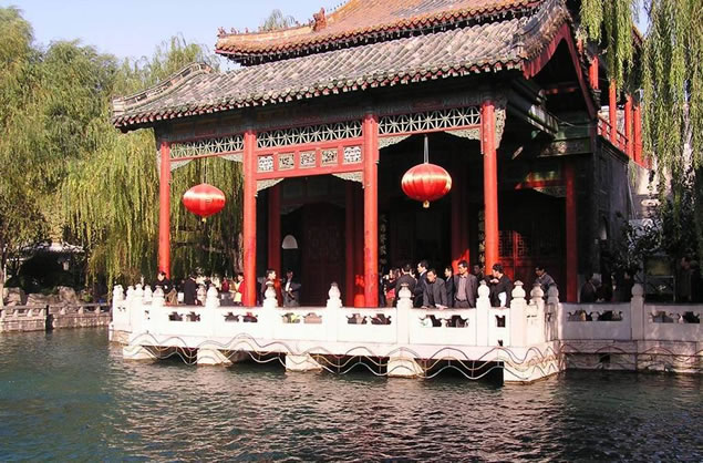 在趵突泉以南石灣泉處的白雪樓,是為紀念明朝文學家、后七子領(lǐng)袖李攀龍所建,原樓已不存,九六年在原址上重建了與白雪樓連為一體的戲劇大舞臺,于同年建成。這里常年舉辦以京劇為主的各種戲劇演出,已成為全國乃至世界知名的演出活動中心。趵突泉東南處的滄園據(jù)說是李攀龍曾讀書的地方,院內(nèi)三廳兩院,外廊環(huán)繞,曲廊相圍,院中奇花異木,蒼松滴翠,當代著名小花鳥畫家王雪濤紀念館1987年建于此處,200余件繪畫常年陳列展出。