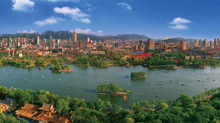 明洪武九年(1376年),濟(jì)南成為山東省會(huì)。民國(guó)十八年(1929年)7月,正式設(shè)立濟(jì)南市 。濟(jì)南市是國(guó)家歷史文化名城,因地處古四瀆之一“濟(jì)水”(故道為今黃河所據(jù))之南而得名。遠(yuǎn)在9000年前的新石器時(shí)代早期,已有先民在此繁衍生息。距今4000至4500年前以磨光黑陶為特征的“龍山文化”,系因民國(guó)十七年(1928年)首次發(fā)現(xiàn)于濟(jì)南東郊龍山鎮(zhèn)而被命名。濟(jì)南是中國(guó)人民解放軍北部戰(zhàn)區(qū)陸軍機(jī)關(guān)駐地、環(huán)渤海經(jīng)濟(jì)區(qū)和京滬經(jīng)濟(jì)軸上的重要交匯點(diǎn),華東地區(qū)重要的交通樞紐之一。濟(jì)南因境內(nèi)泉水眾多,擁有“七十二名泉”,素有“天下第一泉”和“四面荷花三面柳,一城山色半城湖”的美譽(yù),濟(jì)南八景聞名于世,超然樓是明湖新八景之一,是網(wǎng)紅打卡地,是擁有“山、泉、湖、河、城”獨(dú)特風(fēng)貌的旅游城市。