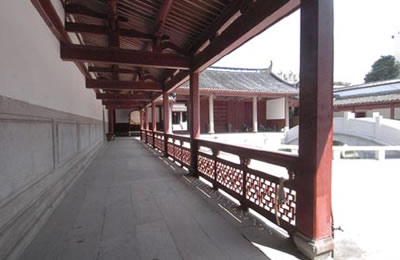大成殿東西兩側(cè)的房子叫“兩廡”,是后世供奉先賢 先儒的地方這配享的賢儒大都是后世儒家學(xué)派中著名的人物,如董仲舒、韓愈、王陽明等。在唐朝僅有20余人,經(jīng)過歷代增添更換,到民國時,多達156人。這些配享的人原為畫像,金代改為塑像,明成化年間一律改為寫有名字的木制牌位,供奉在一座座的神龕中,F(xiàn)在兩廡中陳列著歷代石刻。