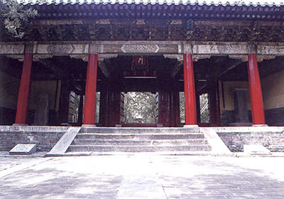 “杏壇”二字,這就是相傳孔子講學(xué)的地方?鬃有訅O(shè)教記載最早見于《莊子,漁父篇》: “孔子游乎緇帷之林,休坐乎杏壇之上,北子讀書孔子弦歌鼓琴”。但是原址在哪里卻無記載.宋天禧二年。1018年),孔子四十五代孫孔道輔監(jiān)修孔廟,將正殿后移擴建,以正殿舊址“除地為壇,環(huán)植以杏,名曰杏壇”,金代始于壇上建亭,由當(dāng)時著名文人黨懷英篆書“杏壇”二字。