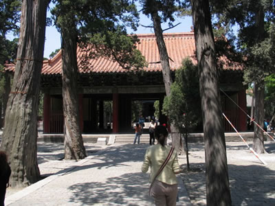 過大中門,即進入孔廟第四進庭院。院落疏闊,古樹蔥郁,禽鳥翔集夏天鸛飛鶴舞,白鷺翩翩,冬春鵲鳴雀喧,昏鴉噪晚,顯得十分幽深。