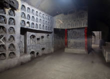 萬(wàn)佛洞位于千佛山北麓,建于1992年,由莫高集錦、龍門(mén)精華、麥積奇觀、云岡薈萃四部分組成,是千佛山的一大勝景。洞長(zhǎng)500米,經(jīng)過(guò)藝術(shù)家精選、濃縮、重構(gòu),用仿造的手法塑造佛祖、菩薩、弟子、天王近3萬(wàn)尊,集敦煌、龍門(mén)、麥積山、云岡全國(guó)四大石窟的精華于一身。