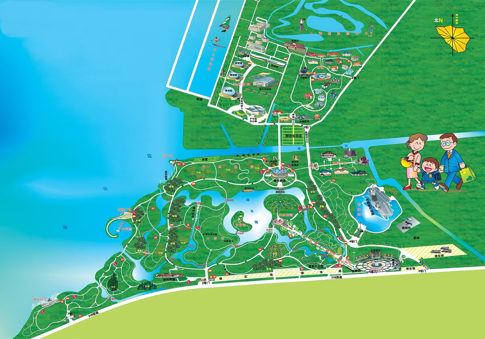 東方綠舟坐落于上海市青浦區(qū)西南,臨近風(fēng)景宜人的淀山湖畔,占地面積5600畝,其中水域面積達(dá)2000畝。東方綠舟由知識(shí)大道區(qū)、勇敢智慧區(qū)、國防教育區(qū)、生存挑戰(zhàn)區(qū)、科學(xué)探索區(qū)、水上運(yùn)動(dòng)區(qū)、體育訓(xùn)練區(qū)、生活實(shí)踐區(qū)共八大園區(qū)組成。