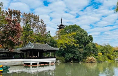 從東大門進(jìn)園,首先看到竹林和竹林上露出的塔尖,頗引人入勝。這批竹園是在舊時(shí)私人住宅的小竹園基礎(chǔ)上擴(kuò)建而成。