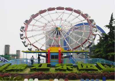 由上海游藝機(jī)公司建造的“上海大轉(zhuǎn)盤”是我國第一座超百米的巨型摩天輪,于 2002 年 5 月 1 日正式運(yùn)轉(zhuǎn)!吧虾4筠D(zhuǎn)盤”總高度 108 米;圓盤直徑 98 米;總重量 580 噸;抗強(qiáng)風(fēng) 12 級(jí);搭載客艙 42 個(gè);最大載客量1260 人 / 小時(shí);運(yùn)行一周約 25 分鐘。圓盤還配有電腦程控的高功率彩燈,晚間狀如一輪高懸空中的彩色明月,美輪美奐。