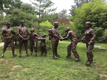勝利大道全面反映抗戰(zhàn)時(shí)期八路軍戰(zhàn)士英勇抗敵,與日軍斗智斗勇,最終取得勝利的畫面。畫面包括:地道戰(zhàn)、地雷戰(zhàn)、小兵張嘎、雞毛信、鐵道游擊隊(duì)、雁翎隊(duì)、狼牙山五壯士、白求恩、聶耳(義勇軍進(jìn)行曲)、黨的兒女、歡慶勝利、支援前線、雙槍李向陽、百團(tuán)大戰(zhàn)、送子參軍、消息樹、紅燈記等21 組雕塑。