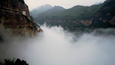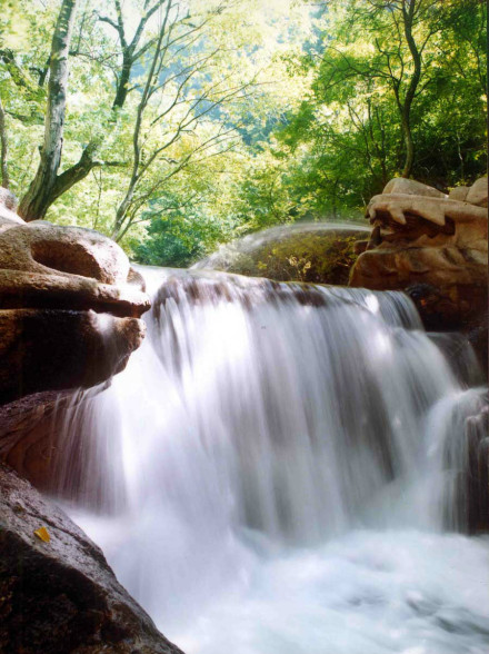 8、二十公里的水濤溝、蒼巖、曲徑、奇樹、怪石、山花、野草點綴其間,北魏酈道元《水經注》所說的綿山 石桐水千回百轉 ,湍湍流過,蒼鷹低回空谷鳥鳴,組成了一幅奇特的山水畫卷。其中的五龍飛瀑落差80余米,游人可從瀑下通過;水簾洞府瀑流從洞前飛流直下,洞內可容納三四十人。這樣的風光,在北方地區(qū)實屬罕見。