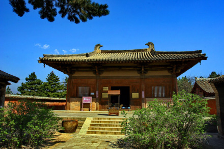 坐落在佛光山的山腰,有“亞洲佛光”的美稱。寺院依山而建,東、南、北三峰環(huán)抱,規(guī)模宏大,其建筑、塑像、壁畫和墨跡被譽(yù)為“四絕”。佛光寺創(chuàng)建于北魏孝文帝年間,唐武宗會昌滅佛,寺廟被毀。唐大中十一年,主殿東大殿得以重建。佛光寺是現(xiàn)存唐代木構(gòu)建筑的范例,在建筑史上有突出的地位。東大殿內(nèi)佛壇上有唐代彩繪泥塑佛像三十五尊,體態(tài)豐滿,栩栩如生。壁畫大多是唐代的原作,也有宋代和明代的,都是不可多得的藝術(shù)佳作。文殊殿為五臺山尚存的唯一金代建筑。