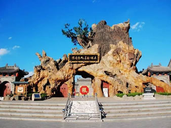 “根雕大門”是尋根祭祖園的正門,為槐根造型,東西跨度20米,高13米,其造型古老滄桑、偉岸厚重、支根入土、虬勁有力,寓意大槐樹后裔同門、同根、同祖、同心。象征大槐樹兒女舍小家,取大義,扎根神州大地,為國家繁榮、民族昌盛孜孜不倦地艱辛勞作和奮斗拼搏。詮釋的是移民后裔共同的根,共同的老家,是大槐樹兒女的魂。