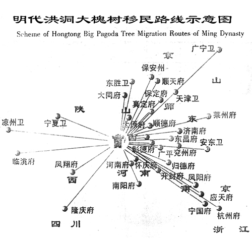 由于明朝大移民在山西省洪洞縣廣濟寺門前的大槐樹下進行移民手續(xù)辦理,即移民的起點,因此本次移民叫做洪洞大槐樹移民,而在此移民出去的人群,絕大多數并非洪洞縣人,甚至不是山西人。
