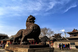 城隍廟是國(guó)務(wù)院重點(diǎn)文物保護(hù)單位,也是國(guó)內(nèi)保存最完整的城隍廟之一。占地面積6000平方米,始建于元至正二十二年(公元1362年),廟內(nèi)主殿建筑結(jié)構(gòu)精巧細(xì)致。主殿前 有玄鑒一座,高達(dá)25米,頗為壯觀,1999年世界歷史文化遺址保護(hù)基金會(huì)公布為全球最精美的古建筑之一,城隍廟是古代宗教文化中普遍崇祀的重要神之一,是護(hù)城佑民、主掌茗 籍之神。是古代“人神共治”思想的明確反映 。城隍廟前,有兩尊貔貅(pi xiu)威武地橫在門(mén)前的廣場(chǎng)上。這種據(jù)說(shuō)只有嘴沒(méi)有屁眼的獸喻意“只進(jìn)不出”,是發(fā)財(cái)?shù)娜皤F。在陽(yáng)光下.鑄鐵的貔貅昂首挺胸,威風(fēng)凜凜,像一對(duì)忠誠(chéng)的衛(wèi)士,日夜鎮(zhèn)守在古城。