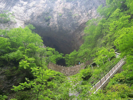 蟒洞是一條又細又窄的峽谷縫隙里的一個洞穴。站在洞中向上望,有一條狹長的縫隙看到天空,就像是雷電劈開的痕跡。洞中有一形似巨蟒的鐘乳石側臥在洞中,故名蟒洞。