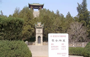 “為冢象祁連山”。元狩六年(前117年),24歲的大司馬驃騎將軍霍去病去世,謚號景桓侯。漢武帝對霍去病的死非常悲傷,他調(diào)來玄甲軍,列成陣沿長安一直排到茂陵霍去病墓地。其冢象“祁連山”,以表彰他的不朽功勛;羧ゲ∧沟撞磕媳遍L101.50米,東西寬73米。頂部南北長15米,東西寬8米,占地面積5841.33平方米,封土體積62961.24立方米。墓冢上下,墓地周圍,亂石嶙峋,蒼松翠柏,蔭蔽墓身,一派山林幽深景象。墓南、北面東西兩角,各有回欄曲徑,通向墓頂,成為國家首批“AAAA”級旅游景區(qū)。