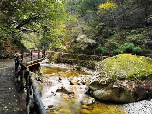 峪內太平森林公園植物資源豐富、種類繁多、有古老的落葉松原始純林、紅樺純林、紫荊花,春夏秋冬,山色各異。