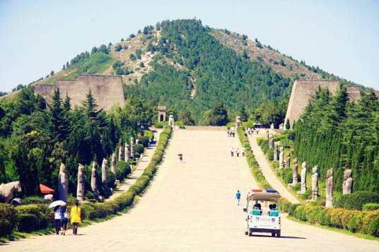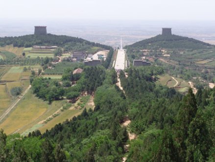 乾陵是第一批全國重點文物保護(hù)單位,也是盛唐文化的代表性旅游區(qū),位于乾縣城北6千米的梁山上,是中國唐王朝第三代皇帝高宗李治和中國歷史上唯一的女皇帝武則天的合葬陵,仿唐長安城格局構(gòu)筑,分為宮城、皇城和外城三個部分。內(nèi)城面積約為230萬平方米,有南朱雀、北玄武、東青龍、西白虎四門,外城周長40千米,F(xiàn)存有華表、翼馬、無字碑、六十一蕃臣石像等精美絕倫的大型石刻100多件。陵園的東南隅分布有17座陪葬墓,出土以唐三彩為代表的珍貴文物4000余件,壁畫1200多平方米,石雕線刻畫150平方米,其中永泰公主墓、章懷太子墓和懿德太子墓地宮已對中外游客開放,為國家4A級旅游景區(qū)。