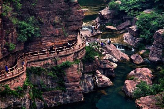 紅石峽位于陜西省榆林市城北3公里處,距離榆林市區(qū)僅5公里。紅石峽谷長約350米,峽谷東崖高約11.5米,西崖高13米,東西對峙,峭拔雄偉。峽內(nèi)榆溪河水穿峽而過直達城西。古代駐守榆林的文人墨客甚至武將都喜好到紅石峽題刻以抒發(fā)邊塞豪情壯志,所以紅石峽又是長城書法藝術(shù)的一大寶庫。從題字的內(nèi)容,可以看出榆林古時“九邊重鎮(zhèn)”的地位。此外,還可以欣賞到宋元時期的石窟藝術(shù)。趕上晴天,就可以一睹“紅山夕照”的風(fēng)采:夕陽之下如同晚霞一般絢麗的紅石峽風(fēng)光。是著名的“榆林八景”之一。