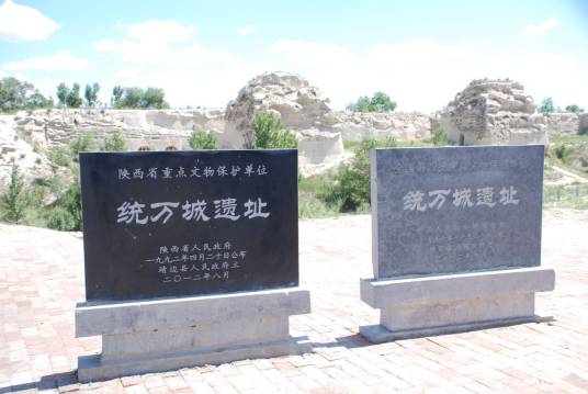 統(tǒng)萬城,因其城墻為白色,當(dāng)?shù)厝朔Q白城子。又因系赫連勃勃所建,故又稱為赫連城。為東晉時南匈奴貴族赫連勃勃建立的大夏國都城遺址,也是匈奴族在人類歷史長河中留下的一座都城遺址,是中國北方最早、最著名的都城,已有近1600年歷史。統(tǒng)萬城始建于公元413年,竣工于公元418年,由漢奢延城改筑而成。后來在北魏太武皇帝拓跋燾一統(tǒng)北方期間,統(tǒng)萬城被攻克,從此設(shè)置為統(tǒng)萬軍鎮(zhèn)。
