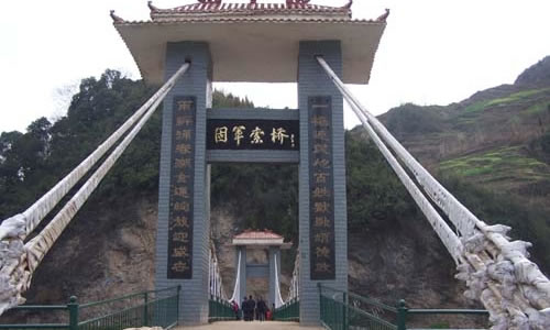 固軍索橋 萬源市固軍鄉(xiāng)中河村是萬源市2005年“7.8”洪災(zāi)的重災(zāi)村,洪災(zāi)沖毀中河村原有鋼絲橋致中河兩岸2900余人無法過河、運輸。固軍中河索橋建設(shè)工程得到省以工代賑辦大力支持并被列為2005年省管重點項目,主體工程投資30萬元,其中國家投入以工代賑資金15萬元,下差資金由當?shù)卣腿罕娮曰I解決。該工程由萬源市交通局設(shè)計施工圖紙并負責技術(shù)監(jiān)管,橋設(shè)計為鋼筋混凝土斜拉索橋,全長95延米,寬3.5米,可承受5噸以下的微型車輛通行。