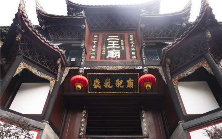 二王廟位于岷江右岸的山坡上,前臨都江堰,原為紀(jì)念蜀王的望帝祠,齊建武(494—498年)時(shí)改祀李冰父子,更名為“崇德祠”。宋代(960—1279年)以后,李冰父子相繼被皇帝敕封為王,故而后人稱之為“二王廟”。廟內(nèi)主殿分別供奉有李冰父子的塑像,并珍藏有治水名言、詩人碑刻等。建筑群分布在都江堰渠首東岸,規(guī)模宏大,布局嚴(yán)謹(jǐn),地極清幽。是廟宇和園林相結(jié)合的著名景區(qū)。占地約5萬余平方米,主建筑約1萬平方米。二王廟分東、西兩菀,東菀為園林區(qū),西菀為殿宇區(qū)。全廟為木穿逗結(jié)構(gòu)建筑,廟寺完全依靠自然地理環(huán)境,依山取勢,在建筑風(fēng)格上不強(qiáng)調(diào)中軸對(duì)稱。