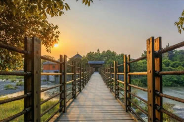 安瀾索橋又名“安瀾橋”、“夫妻橋”。位于都江堰魚嘴之上,橫跨內(nèi)外兩江,被譽(yù)為“中國古代五大橋梁”,是都江堰最具特征的景觀。始建于宋代以前,明末(17世紀(jì))毀于戰(zhàn)火。古名“珠浦橋”,宋淳化元年改“評(píng)事橋”,清嘉慶建新橋更名為“安瀾橋”。原索橋以木排石墩承托,用粗竹纜橫掛江面,上鋪木板為橋面,兩旁以竹索為欄,全長約500米,橋?yàn)殇撍骰炷翗丁?/p>