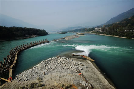 都江堰是當(dāng)今世界年代久遠(yuǎn)、唯一留存、以無壩引水為特征的宏大水利工程。它充分利用當(dāng)?shù)匚鞅备、東南低的地理?xiàng)l件,根據(jù)江河出山口處特殊的地形、水脈、水勢,乘勢利導(dǎo),無壩引水,自流灌溉,使堤防、分水、泄洪、排沙、控流相互依存,共為體系,保證了防洪、灌溉、水運(yùn)和社會(huì)用水綜合效益的充分發(fā)揮。它最偉大之處是建堰2250多年來經(jīng)久不衰,而且發(fā)揮著愈來愈大的效益。