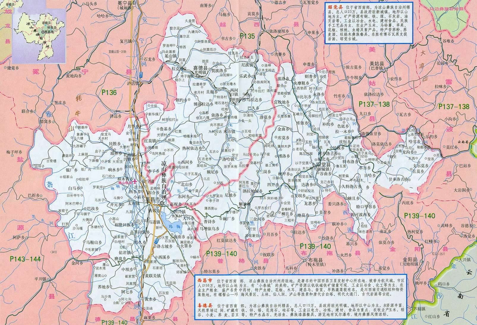 喜德縣轄7個(gè)鎮(zhèn)、17個(gè)鄉(xiāng):