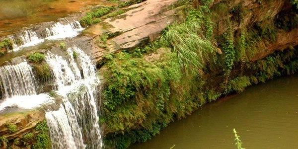 黃金峽:位于丹棱城西24千米張場(chǎng)鎮(zhèn),仁興鄉(xiāng)和王場(chǎng)鄉(xiāng)境內(nèi),峽長(zhǎng)7.5千米,兩岸壁立,對(duì)峙如門,其崖筆立陡削直插云天,形成雄偉壯觀的"一線天"。峽內(nèi)主要景點(diǎn)有:龍?zhí)讹w瀑、金峽湖、雙猩向龍?zhí)丁⑽Q滤、一線天、虹渡、望魚(yú)石、金船等。當(dāng)?shù)厝搜裕?quot;金峽有三奇,曉雨不濕衣,九月瑞雪飛,夜半聞琴聲","神隆博濟(jì)廟,喊聲一出雨就到"。"黃金天子一夜鑿?fù)S金堰"等傳說(shuō)故事更是神奇美妙。